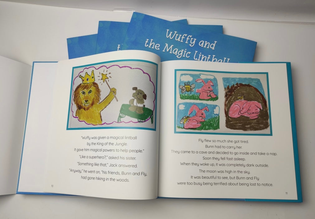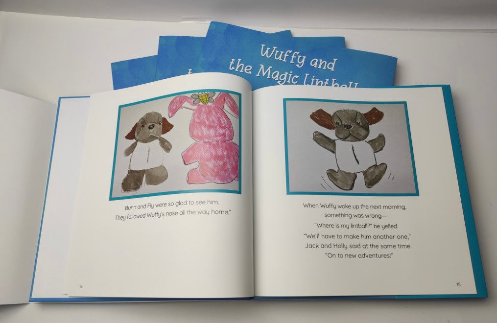 A little, stuffed , gray dog sits on the shelves of a candy store and waits, every day, for someone to buy him. Finally, one day, a kind man takes him home to cheer up his daughter, who is sick. The girl and her brother immediately name him Wuffy. Noticing the tiny lint ball on his nose, the two dream up adventures that Wuffy takes with his friends Bunn and Fly because of the powers of his magic lint ball.